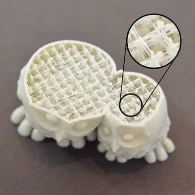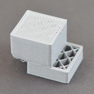 5.1) Недостаточная плотность заполнения. Чем меньше плотность заполнения, тем большее расстояние пройдёт нависающий пластик до следующей опоры. Если заполнение слишком мало, он просто оборвётся, образуя дыру в «крышке модели». Исправляется увеличением параметра «заполнение» в слайсере.