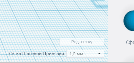 По умолчанию в Тинкеркаде модели передвигаются по трём плоскостям и изменяют свои размеры с шагом в 1 мм. В нижнем правом углу 3д поля находится выпадающее меню «Сетка шаговой привязки», которая позволяет изменить шаг от 5 до 0.1 мм. Это позволяет размещать формы более точно.
