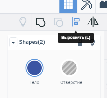 Для выравнивания в Тинкеркаде есть специальная функция «Выровнять» (L) в верхней части экрана. Это очень полезная функция, которая позволяет разместить все выбранные формы по левому и правому краю, а также по центру. Это немного похоже на выравнивание текста в Microsoft World. Выравнивание помогает быстро размещать объекты относительно друг друга, не высчитывая расстояния по шагам