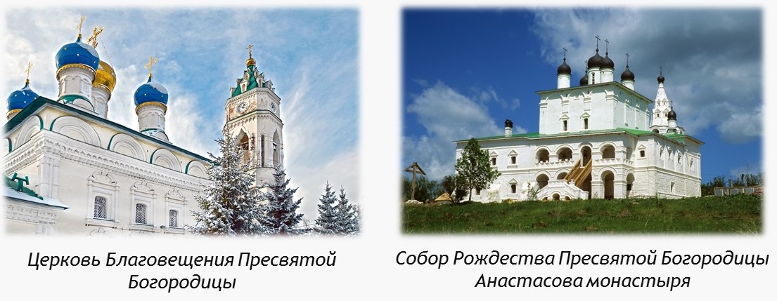 В нынешней Туле осталось очень немного того, что позволяет представить ее облик в XVII в. До наших дней из них сохранился только один — построенная в самом конце столетия церковь Благовещения Пресвятой Богородицы. Но несколько интересных построек этого и даже более раннего времени можно увидеть в городах и селах тульского края: Старо-Успенский собор в Алексине, ансамбль Спасо-Преображенского монастыря в Белёве, Николо-Успенскую церковь Венев-монастыря близ Венёва, Успенскую церковь на Федосьином городище в Епифани, собор Рождества Пресвятой Богородицы Анастасова монастыря близ Одоева и др.