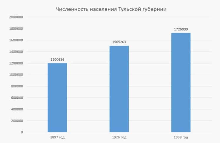 В 1920-1930-е гг. происходило увеличение численности населения Тульского края. С 1923 г. наблюдается процесс увеличения численности городского населения как результат восстановления крупной и кустарной промышленности, а также развития торговли. Число рабочих увеличивалось как в ходе расширения старых предприятий, так и строительства новых промышленных объектов. В регион прибывало большое количество строителей, а затем и рабочих, которые должны были обслуживать вновь построенные предприятия. К 1939 г. население области увеличилось, достигнув численности 1726 000. В 1930-е гг. заметно изменилось соотношение городского и сельского населения. Городское население составляло 36%, а сельское сократилось до 64%. Численность населения Тулы, к концу 1930-х гг. достигла 300000 чел.
