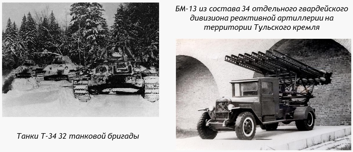 Вечером 30 октября в Тулу прибыла 32-я танковая бригада полковника И.И. Ющука, а еще спустя несколько часов — 34-й отдельный гвардейский дивизион реактивной артиллерии капитана П.И. Кравченко. 31 октября в город вошли также остатки вырвавшихся из окружения 154-й стрелковой дивизии генерал-майора Я.С, Фоканова, 217-й стрелковой дивизии полковника В.П. Шлегеля и 36-й отдельный батальон охраны штаба армии НКО СССР старшего лейтенанта М.Е. Левина.
