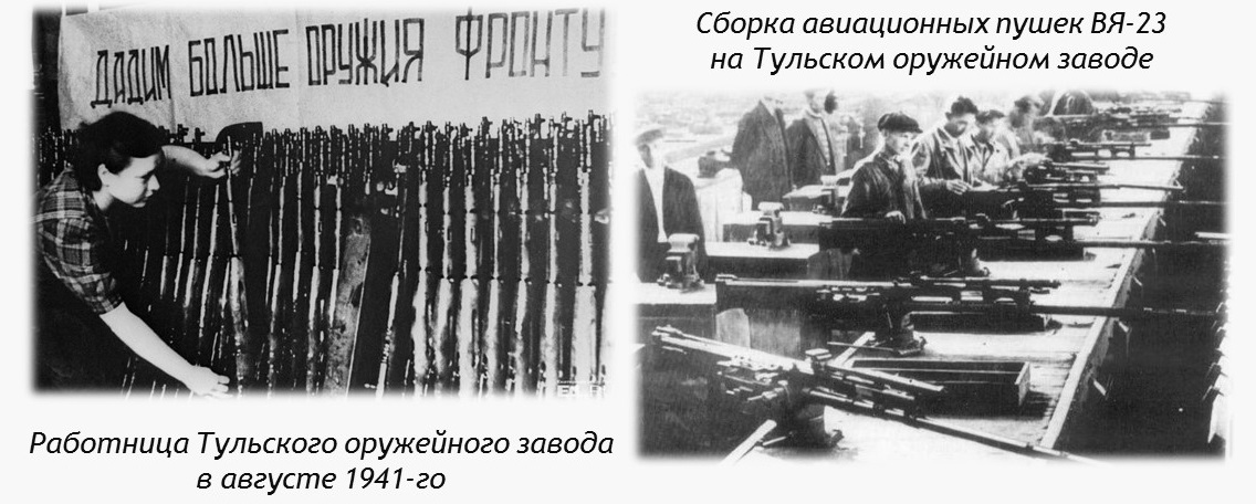 На Урале и в Сибири в недостроенных помещениях без отопления в условиях наступающей зимы туляки-оружейники делали все, чтобы выполнить государственный заказ и дать оружие фронту. В октябре-декабре 1941 г. на фронт были отгружены первые партии вооружения: пулеметы Максима с машиностроительного завода, боеприпасы с эвакуированного завода «Штамп», 14 млн. патронов с патронного завода им. С. М. Кирова.
