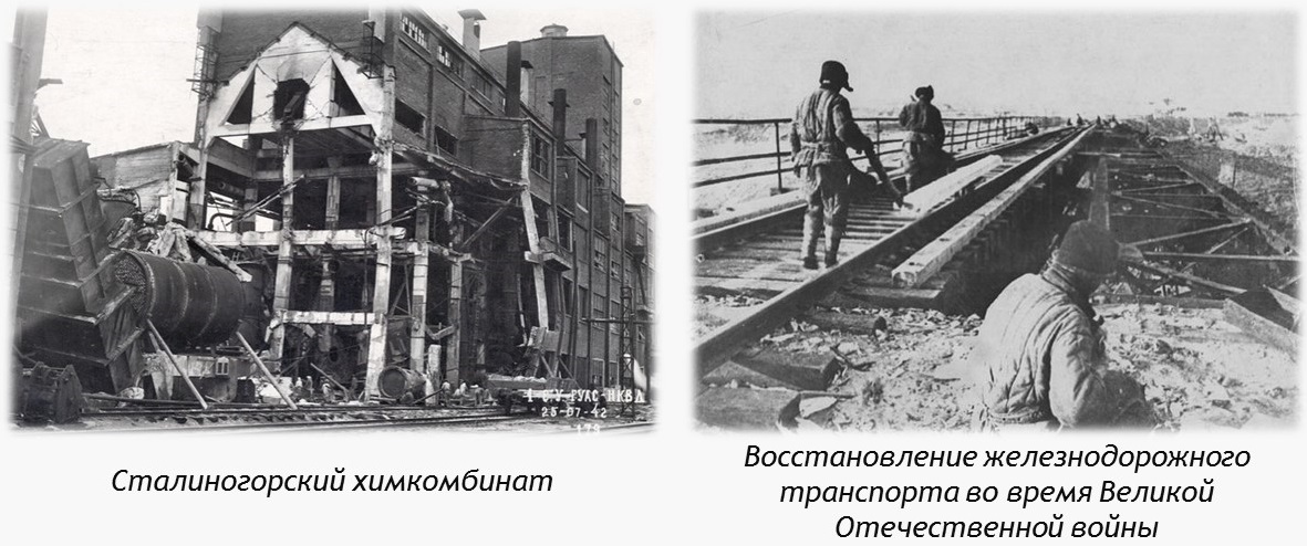 После разгрома немецко-фашистских войск под Москвой и Тулой перед туляками встали сложные задачи восстановления разрушенного народного хозяйства. Оккупанты превратили в развалины города Алексин, Белёв, Богородицк, Болохово, Венёв, Епифань, Крапивну, Плавск, Чернь и др. крупные населенные пункты, сожгли 625 сел и деревень, разрушили Косогорский, Новотульский, Мышегский, Ханинский, Черепетский, Щекинский и др. заводы. 29 декабря 1941 г. Совнарком СССР принял постановление о восстановлении шахт Подмосковного угольного бассейна. В 1942 г. полностью был восстановлен Косогорский металлургический завод, в установленные правительством сроки были пущены Мышегский, Дубенский, Ханинский и Митинский чугунолитейные заводы, Сталиногорский химкомбинат.