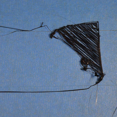 2.4) Недостаточная адгезия. К рабочему столу пластик часто липнет не сильно, поэтому для прилипания используют специальные средства как клей карандаш, лак для волос и другие. Если их не использовать часто происходит отлипание. Исправляется подбором более сильного средства или более интенсивным его нанесением на рабочий стол, использование «юбки» и «подложки».