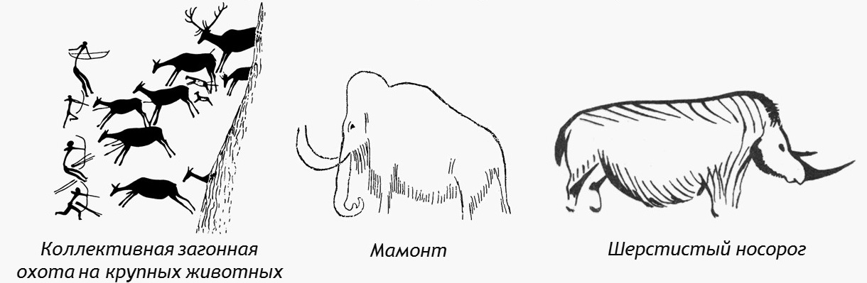 коллективной загонной охоты на крупных животных: ныне вымерших мамонтов,