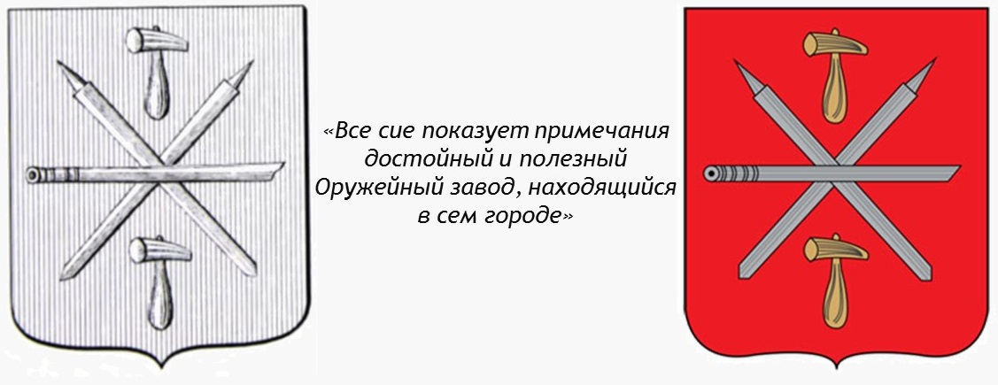 С потребностями тех, кто его обслуживал, часто связывают ускоренное развитие в Туле оружейного дела. «В червленом поле горизонтально положенный на двух серебряных шпажных клинках, лежащих наподобие Андреевского креста, концами вниз, серебряный ружейный ствол; вверху же и внизу по одному молоту золотому»,— таково официальное описание тульского герба, утвержденного указом императрицы Екатерины II 8 марта 1778 г. Символический смысл изображения разъяснен так: «Все сие показует примечания достойный и полезный Оружейный завод, находящийся в сем городе». Внесенный в Полное собрание законов герб на все последующее время графически и символически отобразил магистральный для судьбы города тезис: Тула — центр оружейного производства.
