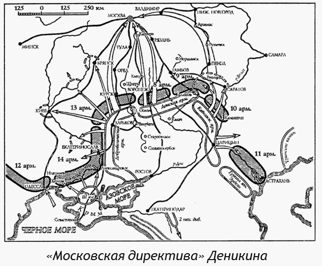 К концу лета 1919 г. Тульская губерния стала прифронтовой. 3 июля 1919 г. Деникин огласил «Московскую директиву» — план похода на Москву, в рамках которого планировалось наступление через направления Курск, Орёл, Тула. Тульская губерния в этот период стала важным источником пополнения рядов Красной Армии. В Туле был создан укрепленный район, и частью повседневности населения стали окопные работы, за лето 1919 г. было проведено 4 крупных мобилизации, в том числе от партии и профсоюзов. Тульская губерния как часть Московского военного округа мобилизовала к октябрю 1919 г. 150 тыс. солдат. В Туле сформировалась 2-я бригада 8-й стрелковой дивизии Западного фронта.
