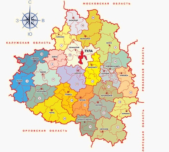 В послевоенные десятилетия Тульская область претерпела значительные административно-территориальные изменения. Указом Президиума Верховного Совета СССР от 5 июля 1944 г. была образована Калужская область, куда вошли 27 районов из Тульской, Смоленской и Орловской областей. Из Тульской области в Калужскую были переданы г. Калуга, Бабынинский, Детчинский, Калужский, Перемышльский и Тарусский районы. В марте 1957 г. из Московской области в Тульскую были возвращены города областного подчинения Сталиногорск и Узловая, а также Гремячевский. Донской, Кимовский и Узловский районы. 1 декабря 1957 г. был упразднен Тульский район, а затем — ещё 9 районов. Тогда же Ханинский район стал Суворовским и был образован Сталиногорский район. В 1961 г. Сталиногорск был переименован в Новомосковск. Указом Президиума Верховного Совета РСФСР от 10 августа 1965 г. город Лаптево и Лаптевский район были переименованы в город Ясногорск и Ясногорский район. После кончины И. В. Сталина в 1953 г. общественно-политическая жизнь заметно активизировалась. Были реабилитированы незаконно репрессированные лица, работавшие ранее в Тульском крае: среди них И.Д. Кабаков, Г.Н. Каминский, Н.А. Вознесенский, Я. Г. Сойфер и др.